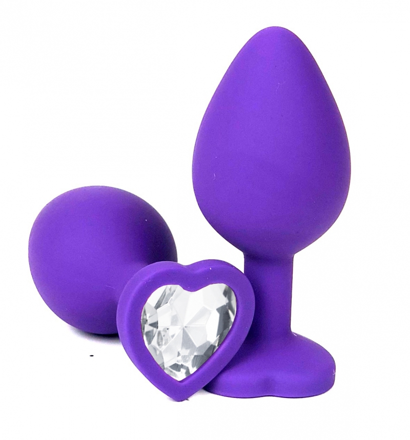 Пробка с белым кристаллом "Vandersex Heart" фиолетовая, L