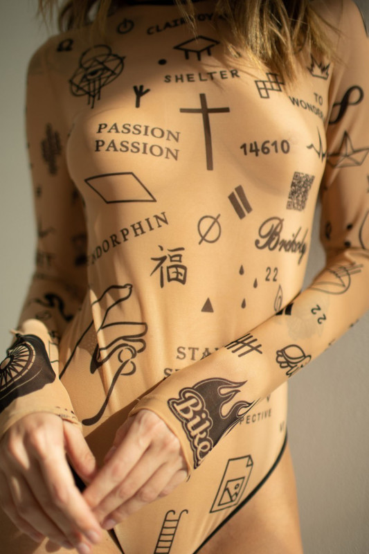 Боди "Brikoly Signs" микросетка с эффектом тату, S