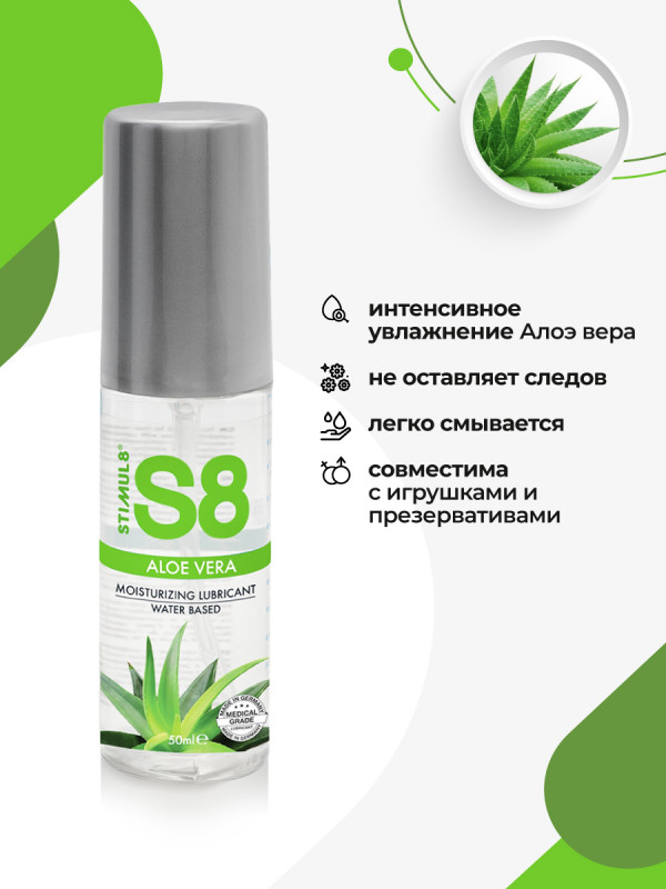 Гипоаллергенный гель с алоэ вера на водной основе без глицерина с невероятно шелковистым длительным скольжением "Stimul 8 Aloe Vera" - идеальное решение для людей с сухой чувствительной кожей и склонных к аллергии!