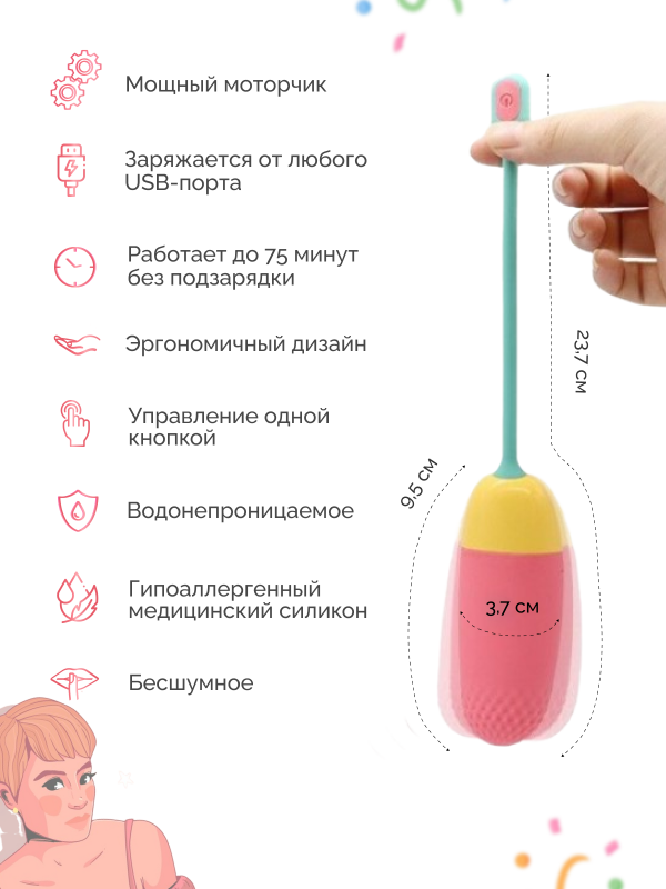 Виброяйцо - уникальная "игрушка", ведь оно включает в себя клиторальный вибратор, вагинальный вибратор, тренажер мышц тазового дна и мини вибромассажер для всех зон на Вашем теле и теле Вашего партнера!
